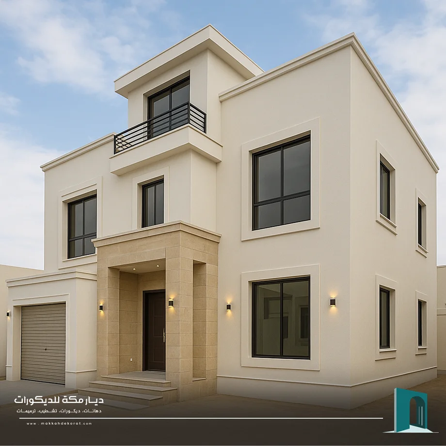 تكسية الواجهات الخارجية بمواد مقاومة للعوامل الجوية، مع اهتمام عالي بالتشطيب والمظهر النهائي.